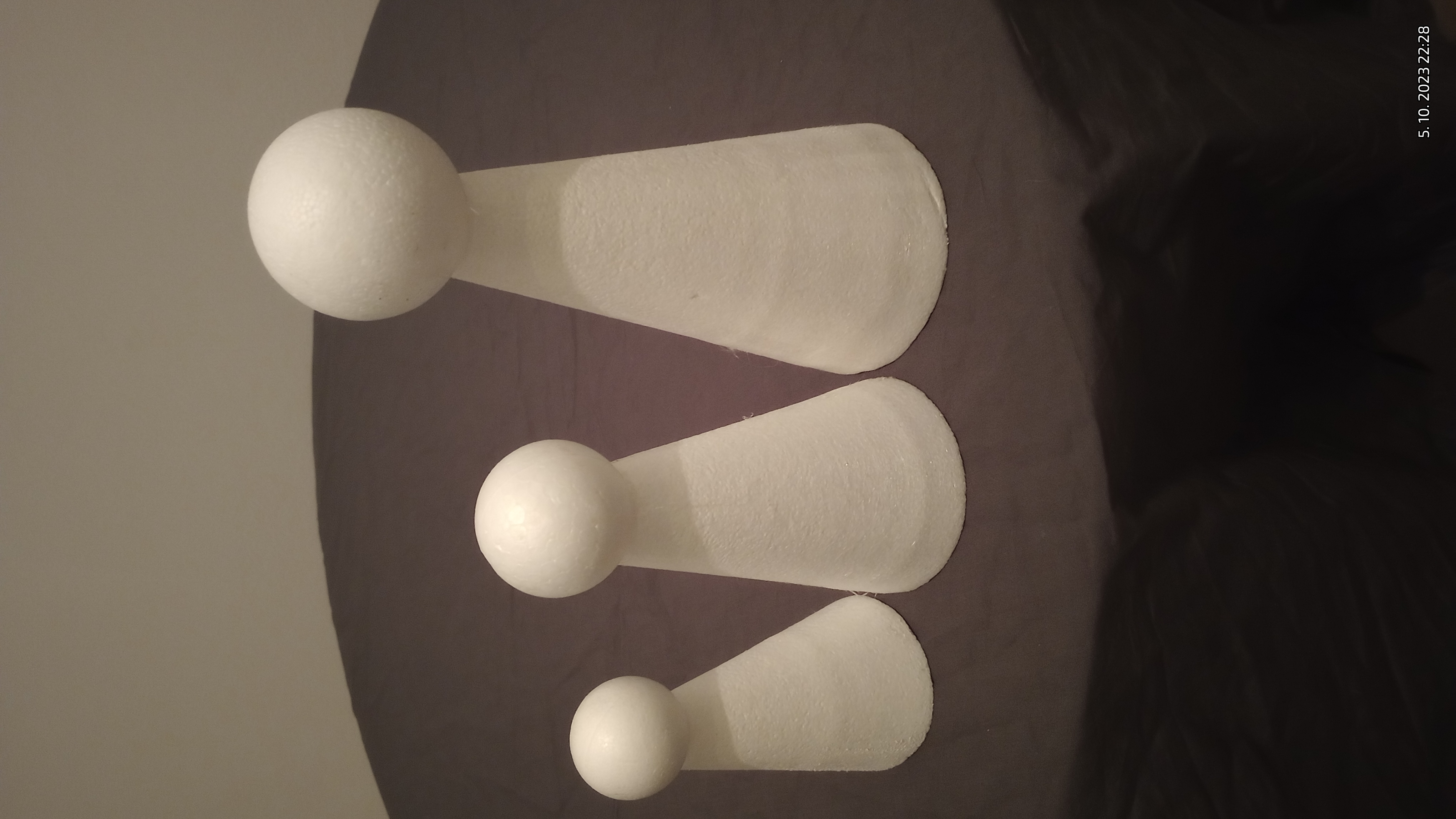 Skládá se z dutého polystyrenového komolého kužele a polystyrenové kuličky, která je přilepená. Používá se jako podklad pro tvoření na výrobu andělů, panenek, víl, nevěst, mnichů, mikulášů, farářů, atentátníků atd. Do dutiny můžete umístit nějaký dárek nebo překvapení nebo cokoliv jiného.