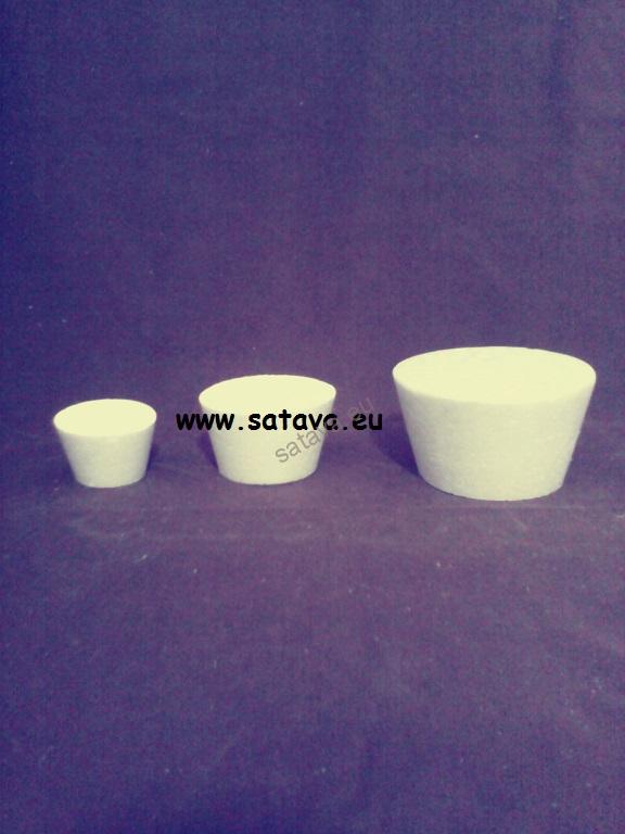Mufina bez kopečku - z bílého polystyrenu. Spodní průměr cca 3,5 - 4 cm, vrchní průměr cca 5,5 - 6 cm, výška cca 3,5 cm. Na obrázku první zleva nebo třetí zprava.